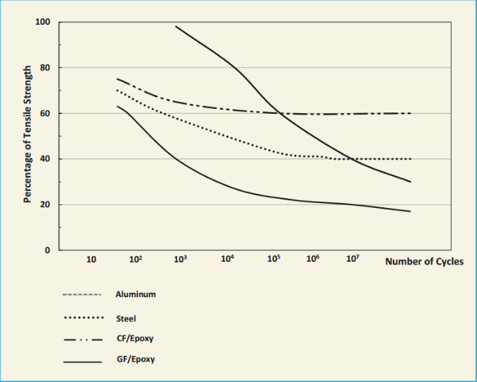 假體材料的另一個要求是委靡強度。顯然,假體所承受的負載并不保持恒定,而是隨著每個步驟而轉變,隨著設備賡續(xù)彎曲并返回其原始外形。每種已知材料在重復彎曲肯定次數(shù)的循環(huán)后都會失去部分強度,最終導致組件損壞。天然,對于假體裝配來說,漸漸降低強度和縮短使用壽命是不可接受的。從60年代開始,鋁假肢的使用壽命僅為1年。聚合物基體的開裂,纖維斷裂,層的分層以及基體/纖維界面處的星散是復合材料在反復彎曲時觀察到的四種不同的破壞模式。纖維/基質界面處的星散對組件的壽命影響最大。下圖的曲線表現(xiàn)了不同材料委靡導致的強度損失程度。在此圖表中可以看到,碳纖維/環(huán)氧樹脂復合材料在經(jīng)歷了極高的應力循環(huán)次數(shù)后仍具有很高的殘余強度。在機翼,風力渦輪機葉片和一級方程式賽車中使用碳纖維/環(huán)氧復合材料可證實這種材料具有極高的委靡強度。